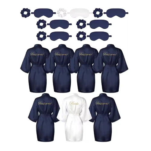 Bride Silk Satin 7 Pieces set Bridesmaid Robes + Eye Mask Headband Bridal Party Set
