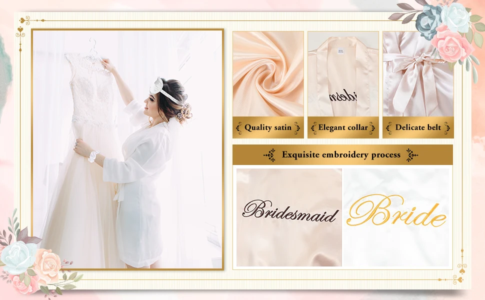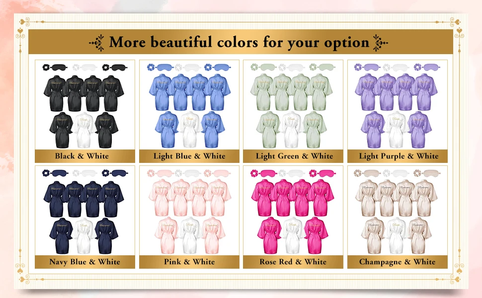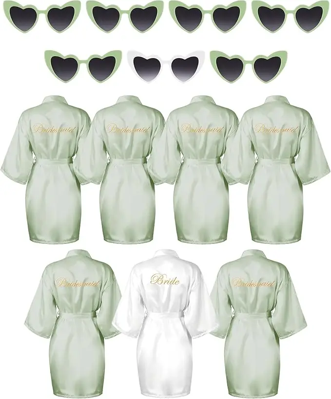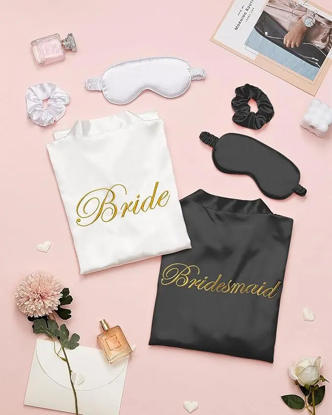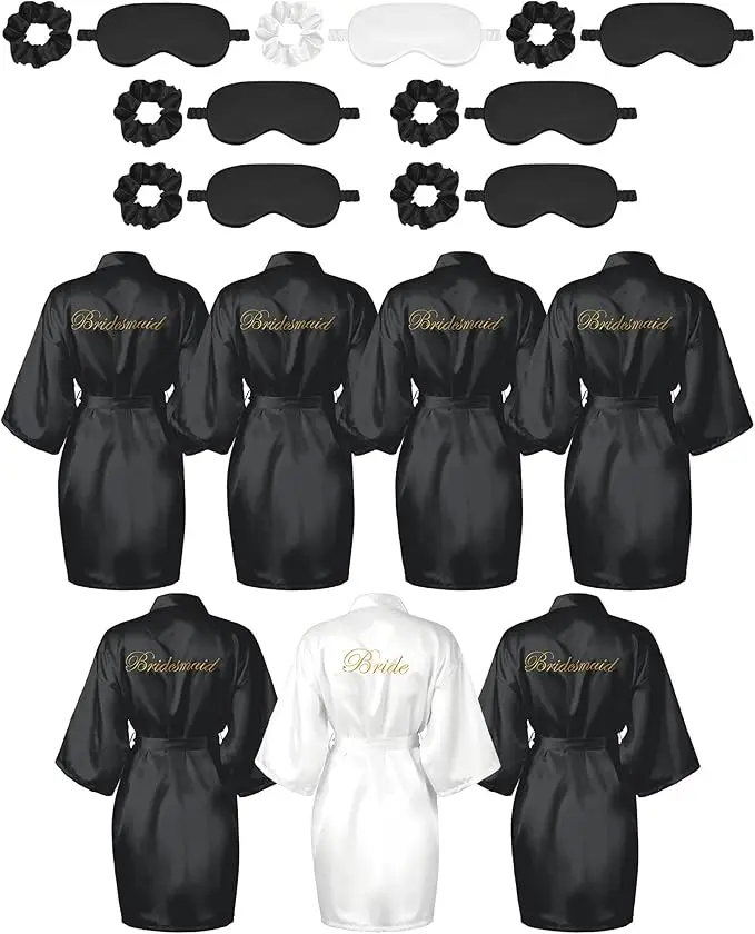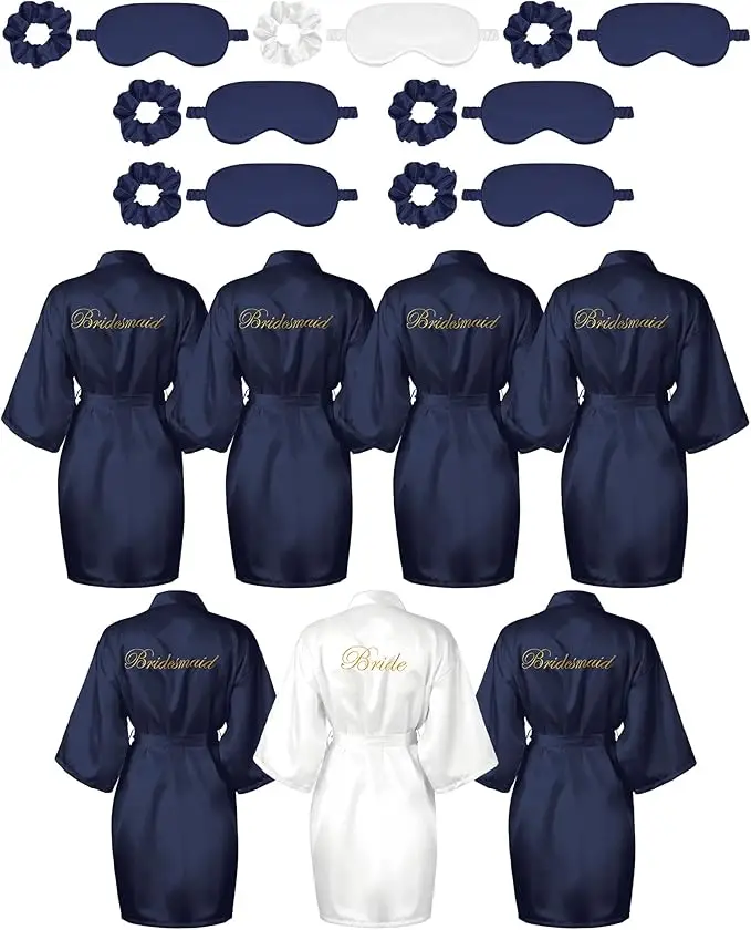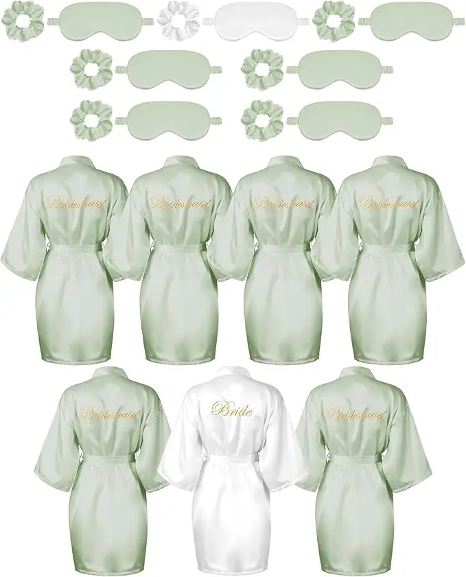 Bride Silk Satin 7 Pieces set Bridesmaid Robes + Eye Mask Headband Bridal Party Set