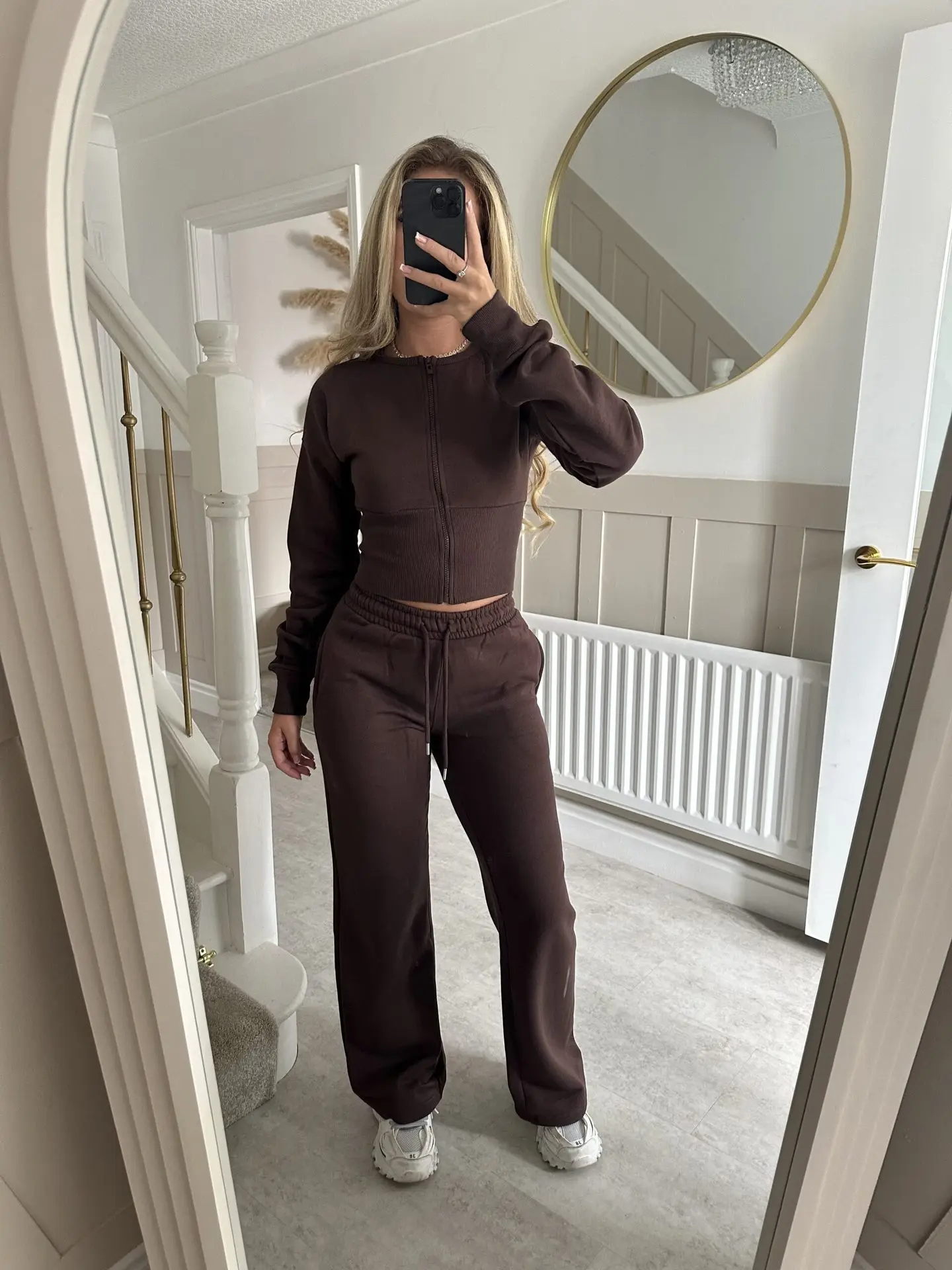 Premium Casual Two Piece Tracksuit, Half Zip Sweater & Tapered Pants Lounge Suit